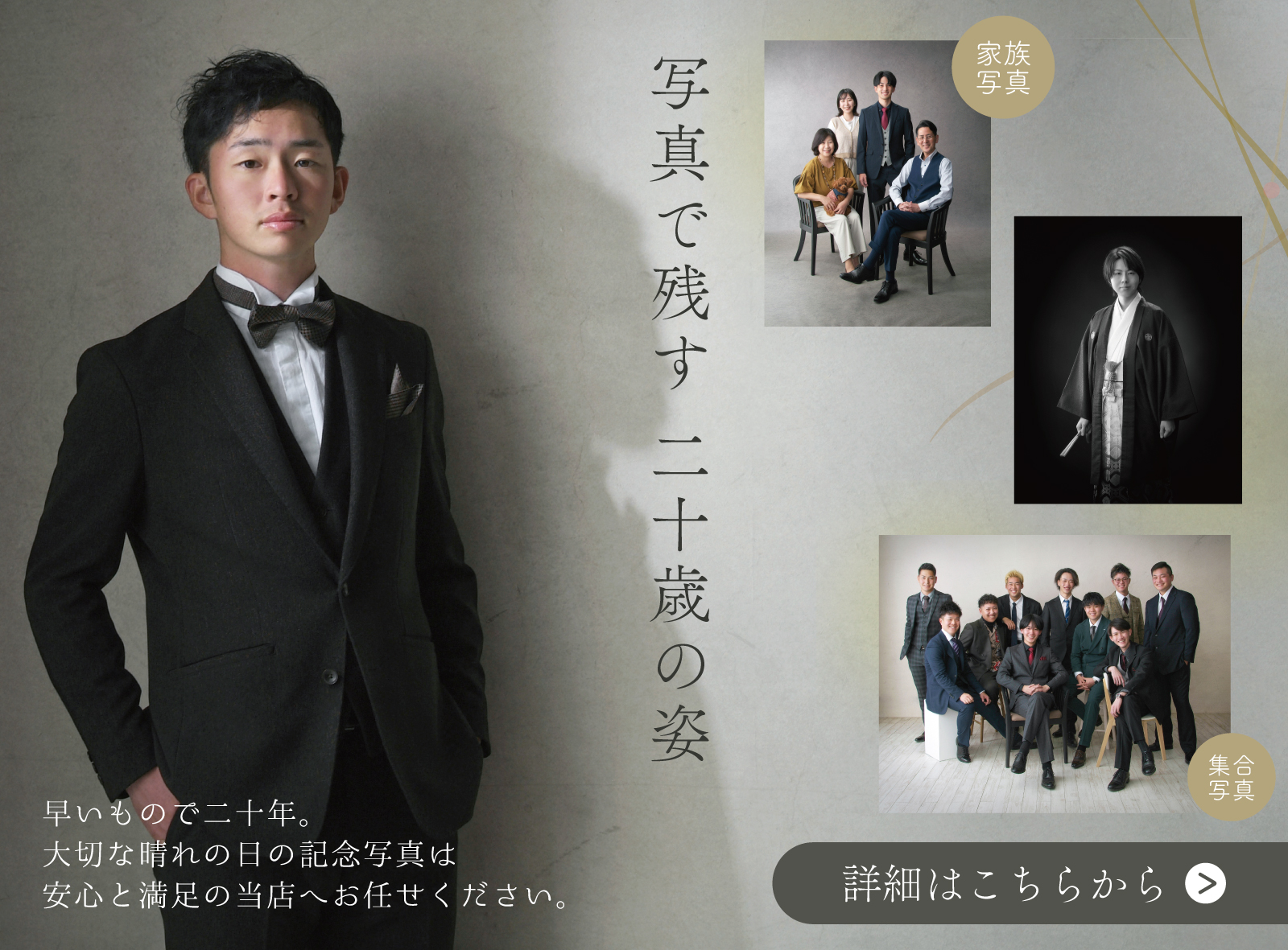 七五三・お宮参り・成人式・ご勇退記念のように人生の節目のお写真から家族写真やポートレート、ビジネス写真まで、吉田茂隆写真舘らしいお写真をお撮りします。
